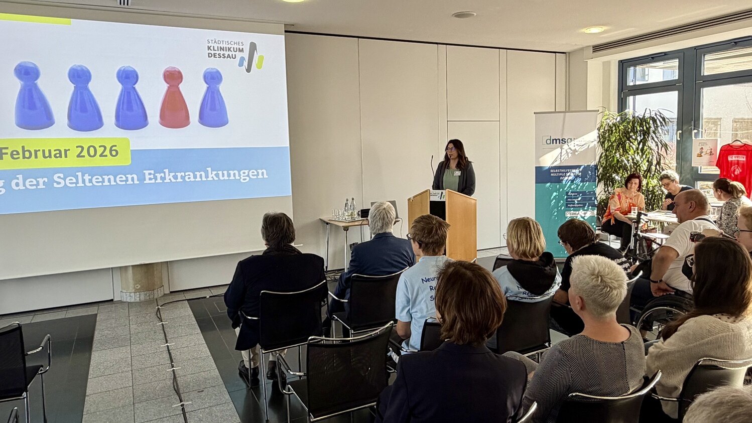 Unter dem Motto „Kleines Bundesland mit großer Expertise“ fand am Städtischen Klinikum Dessau der 16. Aktionstag zum Tag der Seltenen Erkrankungen statt. Rund 30 Selbsthilfegruppen mit etwa 100 Teilnehmern sowie Vertreter aus Politik, Krankenkassen und Medizin kamen zusammen, um sich auszutauschen, voneinander zu lernen und sich gegenseitig zu stärken. Denn während sich die meisten Menschen unter einem gebrochenen Arm etwas vorstellen können, sind Erkrankungen wie Hereditäre Spastische Paraplegie (HSP) oder PCW (Periphere Zyanose) vielen unbekannt – und die Betroffenen fühlen sich oft allein gelassen. Sie empfinden sich häufig als „Waisenkinder“ der Medizin.
