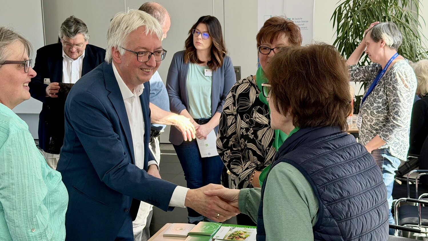 Ein besonderes Zeichen der Wertschätzung war der Besuch von Wolfgang Beck, Staatssekretär im Ministerium für Arbeit, Soziales, Gesundheit und Gleichstellung des Landes Sachsen-Anhalt. In vielen persönlichen Gesprächen nahm er sich Zeit für die Anliegen der Selbsthilfegruppen und Betroffenen und machte deutlich, wie wichtig der direkte Dialog ist. Dabei betonte er: „Wir können in Sachsen-Anhalt stolz auf das Erreichte sein. Die Zusammenarbeit der drei Standorte Magdeburg, Halle und Dessau ist ein echtes Leuchtturmmodell. Mein großer Dank gilt allen, die dieses Netzwerk mit Leben füllen und tagtäglich für Patienten mit seltenen Erkrankungen da sind.“